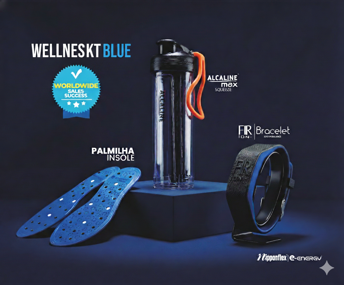 The synergy of the Squeeze Max, Bracelet, and Insoles ensures continuous magnetic balance and hydration while you move.